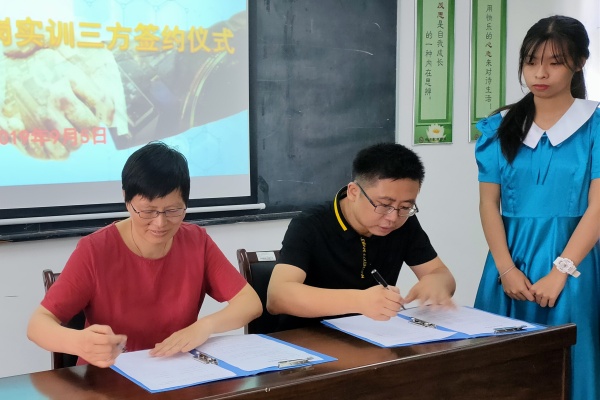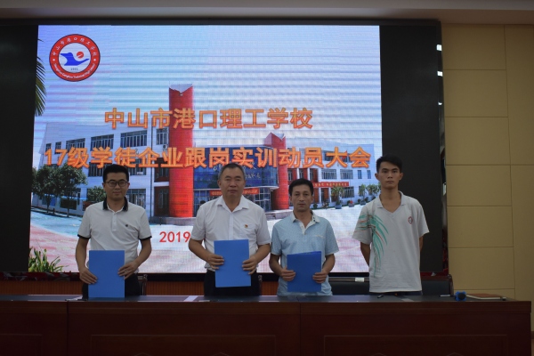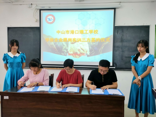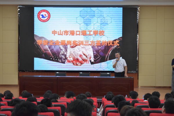 隨后三水電子(中國)有限公司,中山市大洋電機(jī)有限公司,中山市崇高玩具制品廠有限公司,中山市中泰龍辦公用品有限公司分別與學(xué)校簽訂了校企雙方共同培養(yǎng)“現(xiàn)代學(xué)徒”的合作協(xié)議。接著,校企生(家長(zhǎng))代表簽訂了港口理工學(xué)校學(xué)徒企業(yè)跟崗實(shí)訓(xùn)三方協(xié)議。然后各企業(yè)分別派代表展示各自的企業(yè)文化及相關(guān)制度,企業(yè)對(duì)學(xué)徒實(shí)訓(xùn)的工作安排等。