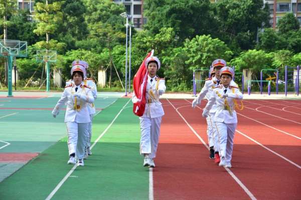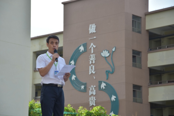 伴隨著莊嚴嘹亮的國旗聲,鮮艷的五星紅旗在秋日的陽光下高高飄揚。在初三年級宋嘉怡同學(xué)的主持下,中山一中鐵城中學(xué)開啟了新學(xué)期的新征程。初三(2)班的杜承東同學(xué)代表全體同學(xué)進行了學(xué)生代表發(fā)言。作為一名新世紀(jì)的青少年,是民族的希望,更是祖國的未來,做一個尊重老師,熱愛祖國的人則顯得尤為重要?!奥仿湫捱h兮,吾將上下而求索”,時刻牢記和遵從“做一個善良、高貴、奮斗的人”的校訓(xùn),從此刻做起,做一個愛國的中國人,做一個愛校的鐵中人!