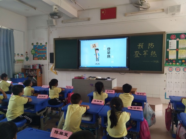 班會課上,班主任以區(qū)防疫中心派發(fā)的預防登革熱知識為內(nèi)容的PPT及動畫視頻,細心講解,循循善誘,讓學生明白登革熱是一種通過蚊子叮咬傳播的急性傳染病,如何預防這傳染病,特別強調(diào),在登革熱高發(fā)期,學生盡量減少外出,特別是少去草地、積水等蚊蟲密集的地方,防范蚊蟲叮咬。要求值日生每天對教室進行清掃消毒;對衛(wèi)生死角要進行全面檢查,清除垃圾雜物等,讓他們一起行動起來,預防登革熱。