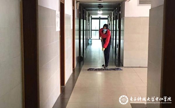 “同學,先測下體溫,回到宿舍記得要先洗手,窗戶要打開通風透氣,衣服要多穿一件,免得吹涼風感冒了……”在10棟男生宿舍,一位戴口罩的宿管阿姨正在為留宿學生測量體溫;宿舍樓里,保潔員們各司其職,有的正為電梯消毒,有的正在走廊上拖地,安靜的樓道里散發(fā)著消毒水獨特的氣味,不時響起他們與學生相互問好的聲音。