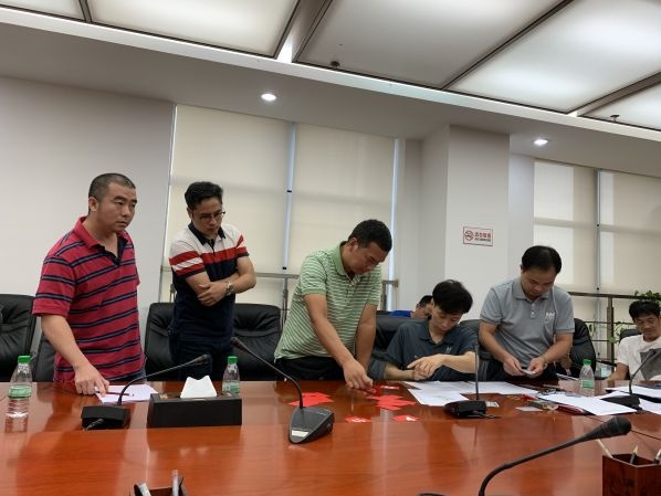 會后,各代表隊領(lǐng)隊通過抽簽確定本次羽毛球比賽的出場順序。