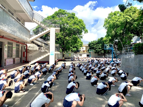 演練警報響起,全校一千多名學(xué)生在教師的組織下按照既定的路線有序撤離,過程中,學(xué)生們都能夠按照演練方案聽從統(tǒng)一指揮,不推擠、不喧嘩。均能夠做到不慌亂,情緒穩(wěn)定,秩序井然。