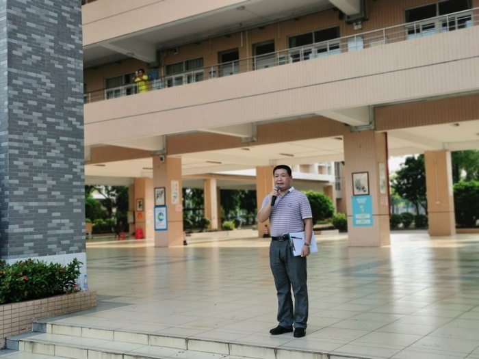 本次新生學(xué)前教育培訓(xùn)活動得到了小欖鎮(zhèn)教體局、永寧社區(qū)、九州基社區(qū)等的大力支持!小欖鎮(zhèn)教育事務(wù)指導(dǎo)中心鄧永飛副主任、永寧社區(qū)社教辦麥林坤主任、九州基社區(qū)社教辦顏鑒光主任、中山市永寧中學(xué)陳清茂校長、陳華梁副校長、楊青華副校長、以及在校的各部門主要領(lǐng)導(dǎo)和全體初一班主任出席了啟動儀式。德育處戴放良主任主持啟動儀式。
