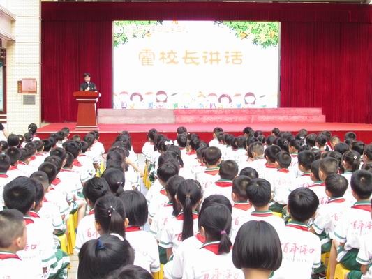 首先,由主持人宣布典禮開始,在莊嚴的升旗儀式后,霍熔坪校長上臺致辭?;粜iL帶領全體師生回顧精彩而又充實的一學期。學校在教育教學工作取得了突破性的發(fā)展。一共獲集體獲獎20多項:廣東省國際跳棋優(yōu)秀特色學校、中山市師德工作先進集體、中山市依法治校示范校、中山市文明校園、中山市先進年級家長委員會、中山先進班級家長委員會、中山市特色班集體、小欖鎮(zhèn)目標評估先進單位……