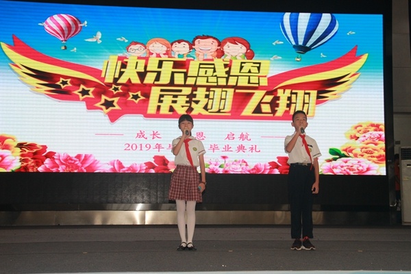 表彰環(huán)節(jié)結束后,緊接著進行了以“成長 感恩 起航”為主題的六年級畢業(yè)典禮。六年級學生用語言、用歌聲表達著對小學生活的不舍,對母校的留戀和對老師的感恩……