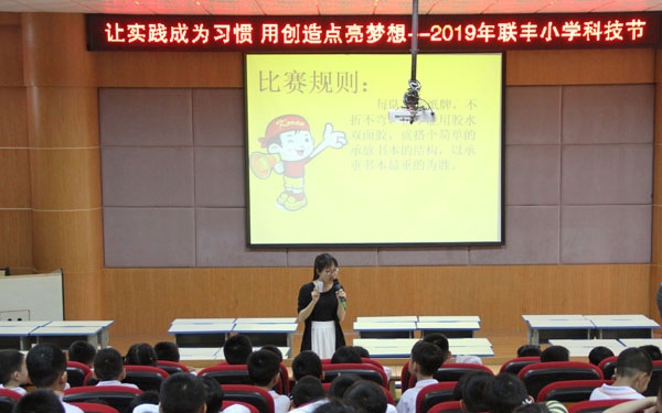 陽(yáng)光明媚,春風(fēng)和煦。在這舒服的天氣里,中山市小欖鎮(zhèn)聯(lián)豐小學(xué)一年級(jí)的小朋友利用大課間時(shí)間進(jìn)行了一場(chǎng)有趣的、以“小紙牌,大力量”為主題的科技競(jìng)賽活動(dòng)。