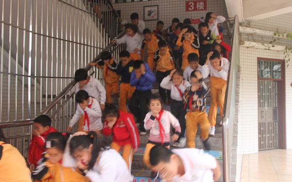 2018年12月19日下午3時45分,當(dāng)聽到警報聲后,全體師生按照預(yù)定方案規(guī)定的逃生路線,有條不紊地迅速撤離,只見他們一個個神情嚴(yán)肅,手捂口鼻,蹲身沿著路線向操場集結(jié)。各樓層負責(zé)引導(dǎo)疏散的教師按照預(yù)先的消防撤離方案疏散學(xué)生,保證樓內(nèi)學(xué)生的安全,以免慌亂中出現(xiàn)踩踏受傷的情況。