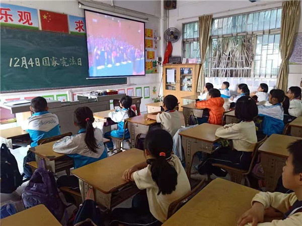 當天上午9:00時,埒西一小學全體師生通過“教育部全國青少年普法網(wǎng)”收看網(wǎng)絡直播,同步跟讀。莊嚴的升旗儀式,讓學生感受憲法的尊嚴,讓學生頓時有身臨其境之感。其次進行“憲法晨讀”的活動,通過上網(wǎng)觀看全國青少年普法網(wǎng),收看直播,各班同學認真同步跟讀,明確了開展普法教育活動的重要意義。最后觀看了第三屆全國學生“學憲法 講憲法”現(xiàn)場展演活動。