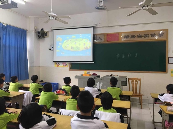 此次禁毒主題教育活動利用每周二的德育小課進(jìn)行,一、二、三、四年級學(xué)生在班級觀看禁毒宣傳視頻,五、六年級在學(xué)校操場進(jìn)行禁毒知識體驗(yàn)活動。鈴聲一響,二年級的全體學(xué)生就按照學(xué)校的安排安靜有序地在教室觀看禁毒視頻。視頻中不僅講述了毒品的相關(guān)知識:1、什么是毒品。2、毒品的種類。3、怎樣預(yù)防毒品。4、毒品的危害。5、毒品違法犯罪等,而且還介紹了販毒團(tuán)伙利用各種手段吸引他人吸毒的方法、各地地區(qū)被引誘吸毒的的案例、拒絕毒品的方法,使二年級的全體學(xué)生深入地認(rèn)識到了毒品的危害,在一定程度上掃除了有關(guān)“禁毒”的知識盲點(diǎn),很好地上了一堂禁毒教育課。