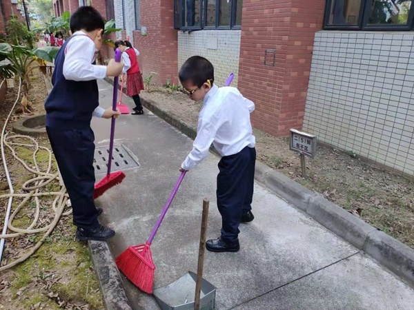 為了更好的發(fā)揮主人翁精神,自升上二年級始,學(xué)校后庭就成為二年級學(xué)生的清潔包干區(qū)。每天早上7:20分小小清潔員便來到后庭,在值日組長的安排下,孩子們分工合作:有的同學(xué)負(fù)責(zé)撿落在地上的樹葉,有的負(fù)責(zé)撿花壇里的紙團(tuán)。還有的負(fù)責(zé)掃地上的垃圾,孩子們干勁十足,不怕臟、不怕累。在大家的一番努力下,不一會就把學(xué)校后庭打掃得干干凈凈。同學(xué)們臉上露出了幸福的笑容?!?/p>