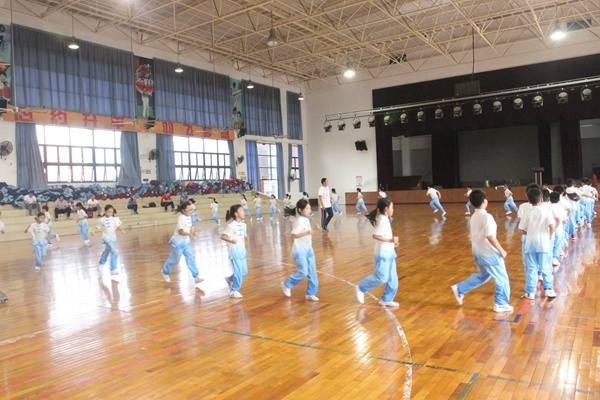 首先林穎寧老師的特色精品課是中、高年級基本步法教學(xué),林老師通過引導(dǎo)學(xué)生對以前所學(xué)的單項步法技術(shù)的復(fù)習(xí),使孩子們迅速的進入學(xué)習(xí)新知識的心理狀態(tài),新授部分的教學(xué),林老師采用教師示范→講解→指導(dǎo)→幫助,通過學(xué)生觀察學(xué)習(xí)→嘗試學(xué)習(xí)→發(fā)現(xiàn)問題→提出問題→解決問題→反饋學(xué)習(xí)→成功體驗→觀摩學(xué)習(xí)→競賽,讓學(xué)生在運動中不知不覺的學(xué)習(xí)、掌握動作,提高能力,使學(xué)生獲得成功的感受。在組織上,以小組的形式為主,發(fā)揚組員互助的優(yōu)勢,使學(xué)生在共同探究、共同學(xué)練、共同創(chuàng)造、教師的共同參與中自我體驗、相互評價、相互促進;接著鄭合元老師的特色精品課是【武術(shù)】洪拳操的教學(xué),本課通過繞正方形慢跑,設(shè)計了武術(shù)游戲鞏固拳、掌、爪、馬步、虛步和弓步等武術(shù)組合動作,同時也進行了熱身和導(dǎo)入,達到營造氣氛、振奮人心、充分調(diào)動學(xué)生熱情及教學(xué)規(guī)范的要求。在主教材教學(xué)中鄭老師先讓學(xué)生初步學(xué)習(xí)洪拳操第二段后,按照四張洪拳操動作圖示由4位小組長帶領(lǐng)隊友先討論學(xué)習(xí)兩個洪拳操動作,四個小組輪流學(xué)習(xí)后,再進行整體洪拳操第二段動作鞏固練習(xí)。四個小組的兩輪比賽展示后,獲得冠軍的組獎勵金牌。隨后進行“石頭、剪子、布”的武術(shù)趣味游戲,最后太極拳放松整理并進行課堂小結(jié)。