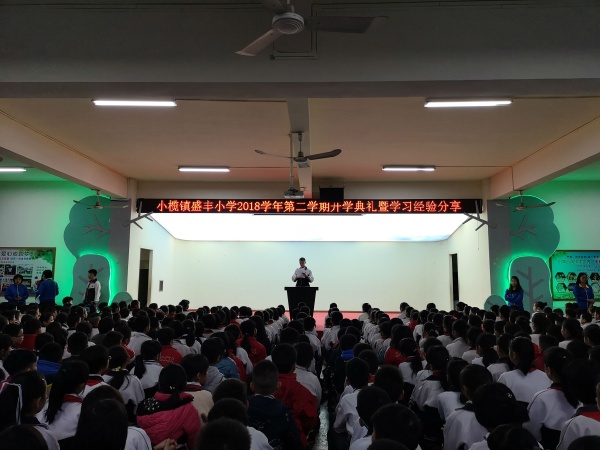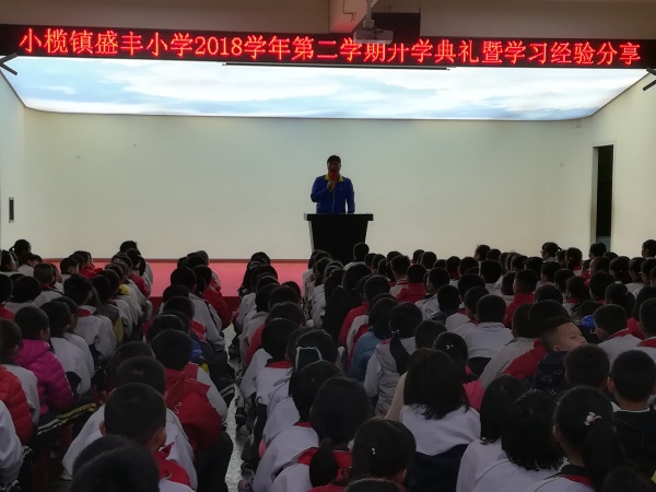 2月18日,盛豐小學(xué)舉行了2018學(xué)年度第二學(xué)期開學(xué)典禮暨學(xué)習(xí)經(jīng)驗(yàn)分享會(huì)。雖然天空下著蒙蒙細(xì)雨,但盛豐小學(xué)全體師生仍然帶著熱情澎湃心情集中在風(fēng)雨樓大廳,參加2018學(xué)年第二學(xué)期開學(xué)典禮。全體師生肅立,奏唱國(guó)歌。會(huì)議在同學(xué)們鏗鏘有力的歌聲中拉開帷幕,五星紅旗冉冉升旗,全體師生面向國(guó)旗致敬。接著,分別由五、六年級(jí)優(yōu)秀學(xué)生學(xué)生代表徐傲翔、李國(guó)濤在會(huì)上做學(xué)習(xí)經(jīng)驗(yàn)分享,他們毫無保留地介紹他們對(duì)學(xué)習(xí)上的一些做法與見解,讓其他學(xué)生受益不淺。