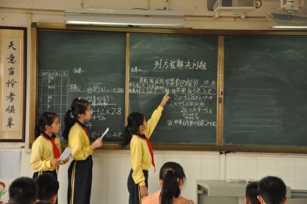 隨著清脆的上課鈴聲響起,五年級的徐惠霞主任為參與研討活動的老師們上了一節(jié)精彩的小組合作學(xué)習(xí)研討展示課《列方程解決問題》。徐主任采用了小組合作模式充分體現(xiàn)了“自主學(xué)習(xí)、自主探究”的教學(xué)特點,通過多次的小組合作學(xué)習(xí)來展現(xiàn)學(xué)生對解方程的理解,使學(xué)生樂在課堂中。學(xué)生以小組合作的形式對例題進(jìn)行研究,然后把小組研究成果板書到黑板上,再展示給大家看,學(xué)生的精彩講演贏得了陣陣掌聲。學(xué)生們在在愉快的合作過程中學(xué)到知識。