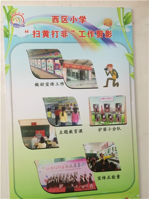 二是開展主題活動將“掃黃打非”融入課余生活。該校所有班級每個學(xué)期召開1—2次“掃黃打非”主題班會,并積極舉辦了“綠書簽”進(jìn)校園、書法作品征集、專題手抄報制作和“掃黃打非·健康你我他”主題征文比賽等活動,真正讓“掃黃打非”融入學(xué)生課余生活。
