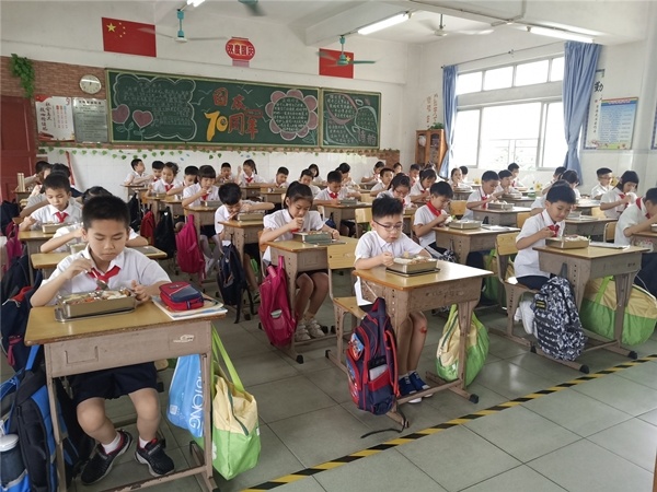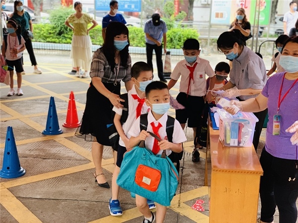 通往校園的河涌路上,孩子們按照學(xué)校制定的上學(xué)時(shí)間,實(shí)行錯(cuò)峰上學(xué)。越靠近北區(qū)小學(xué)的遮雨棚,越看清排隊(duì)的孩子們一臉認(rèn)真,聽從現(xiàn)場值日老師的引導(dǎo),快速進(jìn)入校園!今天是一、二和三年級(jí)返校復(fù)課的第二天,經(jīng)過昨天的校園生活,低年級(jí)孩子們已經(jīng)了解上學(xué)的秩序,學(xué)校的行政班子依然不懈怠地早早在校門口做好迎接全校學(xué)生上學(xué)的準(zhǔn)備,即使是已經(jīng)熟悉的測量體溫工作,值日老師們都一絲不茍地對(duì)待,面對(duì)全校學(xué)生錯(cuò)峰進(jìn)入校園,壓力不可小視,這種認(rèn)真對(duì)待的態(tài)度是北小一貫的常態(tài)!