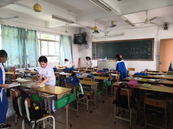 下午16:40,全校大掃除基本完成。全校的教室、辦公室等地方煥然一新,地板干凈了,桌子干凈了,門窗也干凈了,連平時最臟的角落也變干凈了。公共場所的樹葉也掃干凈了,垃圾沒了,積水也清理了,有效地清除蚊蟲滋生的地方,預(yù)防登革熱疾病的傳染。老師的辦公室桌面干凈整潔,無雜物亂擺亂放,無灰塵。廁所無異味,地面干凈無水,垃圾清掃干凈,無雜物亂擺亂放。