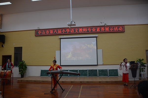 戰(zhàn)鼓擂,古箏起,笛聲伴著沖天起!那震撼人心的鼓點(diǎn),那清脆如竹的笛聲,那連綿不絕的古箏彈奏,一下子把在中山市東區(qū)遠(yuǎn)洋小學(xué)階梯室參加中山市第六屆小學(xué)語(yǔ)文教師專業(yè)素養(yǎng)展示活動(dòng)的教師從漸入疲憊的心態(tài)驚醒,內(nèi)心熱血被點(diǎn)燃,屏幕上那莊嚴(yán)威武的皇家宮殿在炮火連天中逐漸消失的畫面,讓大家的愛國(guó)之心再次被點(diǎn)亮。而這個(gè)帶給大家驚喜的參賽者,正是來(lái)自中山市小欖鎮(zhèn)績(jī)東二小學(xué)的布雅詩(shī)老師。