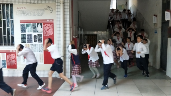 10月29日下午4:38分,警報拉響,演練開始。各班學(xué)生迅速有序按照各自逃生路線向安全區(qū)域疏散。每個班級由任課教師維持秩序、應(yīng)急疏導(dǎo),各樓梯口都有老師從旁指揮引導(dǎo)。學(xué)生聽從指揮、行動迅捷,沒有驚慌失措的喊叫,也沒有一人摔倒。各個樓層樓梯口老師最后進行清場,保證沒有一個學(xué)生滯留。1000多師生僅用三分鐘時間就完成整個逃生演練,整個過程做到了快速、安全、有序。