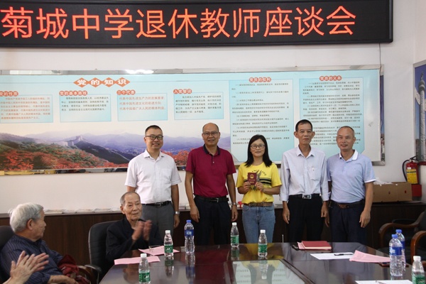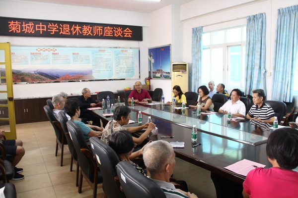 王永月校長代表學校向退休教師匯報菊城中學近幾年所取得的成績。一是生源變好,往年極少到菊城中學入讀的廣源、菊城兩所小學的畢業(yè)生今年增多,翔鴻、東陽等民辦學校的生源越來越好。二是小欖花城中學11位公辦身份的骨干教師分流到菊城中學,增強了教育力量;時值今年全鎮(zhèn)行政輪崗,分別從永寧中學和小欖一中調(diào)入文炳發(fā)、林木茂兩位副校長,同時入職的有盧惠嬋主任、周虎老師、李霞老師。三是學校建設(shè)有大發(fā)展,有計劃有步驟地進行建設(shè)和維修。已經(jīng)升級了初三的多媒體為一體機,初三年級各班安裝了空調(diào),目前在進行飯?zhí)蒙壓凸?jié)水工程改造,以后將對體育館和教室進行空調(diào)線的布置,以備各室場安裝空調(diào)。退教教師代表說到:菊中這些年的長足進步和所取得的成績是有目共睹的,我不但剛才聽到王校長的介紹,在社區(qū)、在社會我也經(jīng)常聽到對菊中的夸贊之聲,我們作為退休老師,感到欣慰,也為菊中感到驕傲。