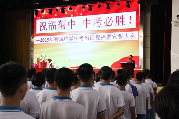 深情祝福,整裝待發(fā)。愿此次壯行儀式,帶給考生更多的感動與力量,讓他們在鼓舞下全力沖刺,爭創(chuàng)佳績!2019中考,菊城中學(xué)必勝!