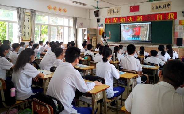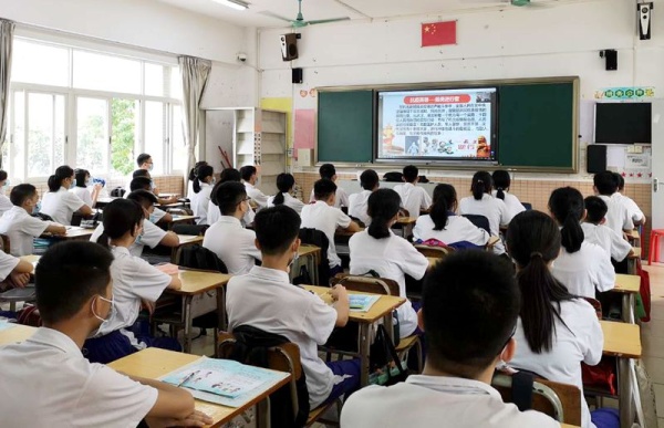 接著,陳清茂校長直播講授 《返校復學第一課》,帶領(lǐng)著全體師生在教室舉行升旗儀式,觀看《疫情里的中國精神》視頻,希望同學們時刻將家國情懷厚植于心,時刻將嚴格自律牢記于胸。隨后,楊青華副校長開展《歡迎來到心理課堂 》心理健康講座,教會學生如何巧妙的化解疫情期間親子之間的矛盾,用心引導學生從線上學習回到教室學習等心理情緒調(diào)節(jié)的方法和技巧。