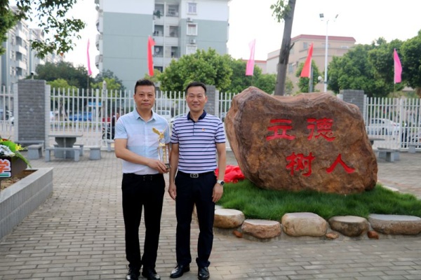 在楊副校長的主持下,章偉志校友、鄧永飛副主任、布寶文委員、陳清茂校長共同為中山市永寧中學(xué)“偉志苑”揭幕,將活動推向高潮。章偉志校友在隨后的講話中回憶自己在永寧中學(xué)的青蔥歲月,感慨良多。建設(shè)“偉志苑”的初衷就是讓永中學(xué)生的安全得到保障,實現(xiàn)人車分流,讓學(xué)校的環(huán)境更加優(yōu)美,硬件設(shè)施更加完善。“偉志苑”的幾棵大樹,有他對母校和學(xué)子們的祝福和寄托。一棵樹木的長成,離不開澆灌,正如學(xué)子們也離不開老師的辛勤付出和教育。章偉志校友愿母校能和大樹一樣,生生不息,桃李滿園,殷切希望學(xué)弟學(xué)妹們以孔子的人格為標(biāo)尺,以學(xué)修身,為國修業(yè),穩(wěn)穩(wěn)地走向更高的知識殿堂,以優(yōu)異成績報答母校。接著,初一9班的黃安琦同學(xué)代表全體永中學(xué)子向校友、領(lǐng)導(dǎo)和老師們鄭重承諾,一定會發(fā)揚永中的“博愛之心”和“奉獻(xiàn)精神”,做一名擁有一顆博愛之心的永中學(xué)子;一定會勵志勤學(xué),立鴻鵠志,做奮斗者,把校友們傳遞的愛心接力棒接過來,讓愛心行動傳承下去。