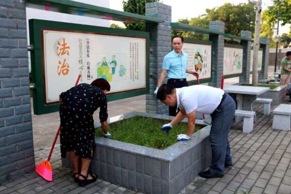 黨員們干勁十足,現(xiàn)場(chǎng)氣氛活躍。整個(gè)義務(wù)勞動(dòng)過(guò)程中,各小組的黨員們帶著清潔工具在各個(gè)分片的區(qū)域,清掃校園內(nèi)的枯枝落葉、雜草雜物、樹(shù)枝上掛著的墜物、裝運(yùn)垃圾等,發(fā)揮了不怕苦、不怕累、任勞任怨的精神,不僅充分彰顯了黨員的先鋒模范作用,而且也樹(shù)立起了“一名黨員、一面旗幟”的良好形象。