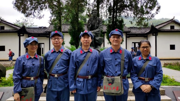 7月10日上午,學(xué)員們一大早就身著紅軍服,颯爽英姿,頗有當(dāng)年紅軍風(fēng)采,自豪感油然而生。尤其是來(lái)到井岡山紀(jì)念碑前合影,成為一道獨(dú)特的風(fēng)景。