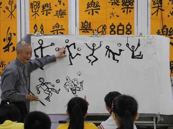 29日下午,受中山市菊城小學(xué)的邀請(qǐng),方唐老師到菊城小學(xué)給國(guó)畫(huà)社團(tuán)的同學(xué)們上了一堂有趣的水墨人物繪畫(huà)課。他系統(tǒng)地向?qū)W生傳授著人物繪畫(huà)的步驟與方法,重點(diǎn)強(qiáng)調(diào)人物動(dòng)態(tài)的變化和把握。方老師一邊活潑生動(dòng)地演示一個(gè)個(gè)動(dòng)態(tài),隨后把這些動(dòng)態(tài)基本型畫(huà)出來(lái),再逐步教導(dǎo)孩子如何根據(jù)動(dòng)態(tài)基本型畫(huà)出完整的人物造型、深入刻畫(huà)人物的五官、表情,不一會(huì)兒,一幅充滿各種人物表情的生活動(dòng)態(tài)圖就展現(xiàn)了出來(lái),這生動(dòng)的形象與直觀的教法引來(lái)孩子們“哇!哇!哇!”的夸贊聲。方老師還循循教導(dǎo)孩子畫(huà)畫(huà)一定要持之以恒,要善于觀察生活、記錄生活,遇到自己感興趣的人和事物動(dòng)動(dòng)畫(huà)筆畫(huà)出來(lái),做好積累,建立自己的畫(huà)畫(huà)知識(shí)庫(kù)。畫(huà)多了,畫(huà)熟了,以后自己想要畫(huà)的造型就能馬上畫(huà)出來(lái)了。孩子們也不甘落后,紛紛在自己的小畫(huà)本上學(xué)著方老師的畫(huà)法,開(kāi)始構(gòu)思自己的作品,方老師都予以認(rèn)真地指導(dǎo)。整節(jié)課孩子們都學(xué)得專注開(kāi)心,熱情高漲,一邊聽(tīng)課一邊不時(shí)向老師請(qǐng)教問(wèn)題?,F(xiàn)場(chǎng)的教與學(xué)的互動(dòng)氛圍非常濃厚,同學(xué)們都非常喜歡童趣十足、幽默活潑的方唐老師,課后小畫(huà)迷都要方老師給自己簽名呢!