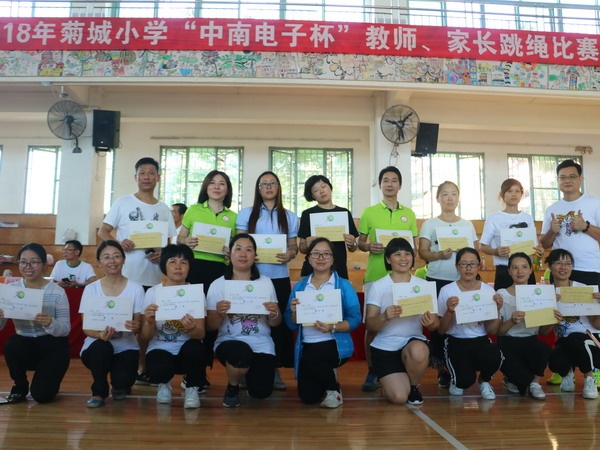 5月24日下午,由菊城小學(xué)工會(huì)和家長(zhǎng)委員會(huì)聯(lián)合舉辦的2018年菊城小學(xué)“中南電子杯”教師、家長(zhǎng)跳繩比賽在學(xué)校體育館隆重舉行。本次比賽全校教師、家長(zhǎng)共計(jì)二百三十五人參加了比賽。