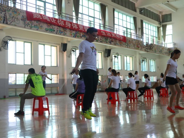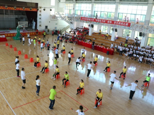 接下來(lái)的各年級(jí)組比賽把本次活動(dòng)推向了高潮。體育館里哨聲、搖繩聲、加油聲……此起彼伏,比賽的氣氛異常激烈。