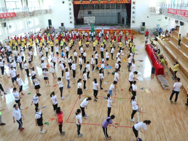 隨后,全體參賽老師和家長(zhǎng)在關(guān)泳釧老師的帶領(lǐng)下進(jìn)行了熱身活動(dòng)。大家做得認(rèn)真而且投入,每一個(gè)動(dòng)作、每個(gè)部位都充分的進(jìn)行了活動(dòng),在音樂(lè)聲中迅速點(diǎn)燃了體育館里運(yùn)動(dòng)的氛圍。