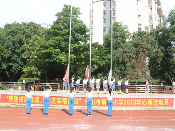 5月7日上午,菊城小學在升旗儀式上舉行了“預防校園欺凌,營造幸福校園”心理活動月啟動儀式。