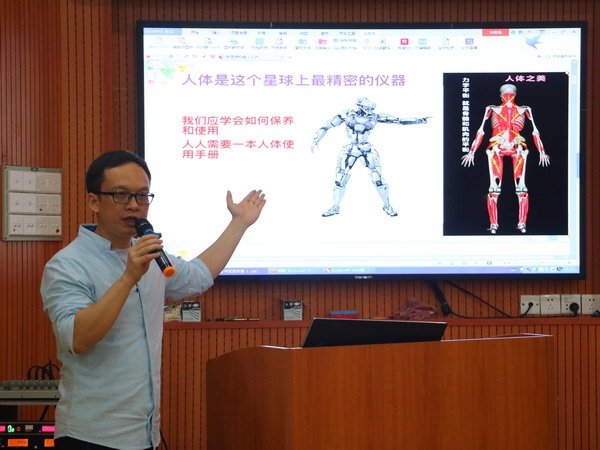 薛煒醫(yī)生用淺顯易懂的語言,時而用醫(yī)學(xué)名詞,時而用英文和學(xué)生交流,時而舉學(xué)生看過的動畫片為例,向?qū)W生零距離地介紹了人體的結(jié)構(gòu),如何對身體進行保養(yǎng)和使用。