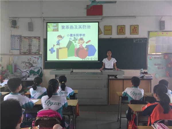 最近廣東部分地區(qū)發(fā)現(xiàn)人感染登革熱病例,為進(jìn)一步提高師生們對(duì)登革熱的認(rèn)識(shí),提高廣大師生對(duì)登革熱的防治能力,防止登革熱在校園蔓延,保障師生的生命安全,6月21日上午,東陽(yáng)學(xué)校各班舉行了登革熱防治教育。