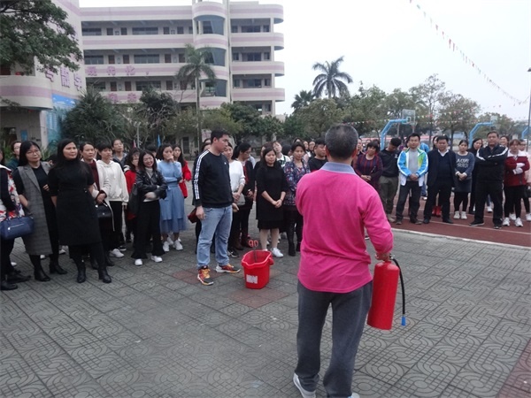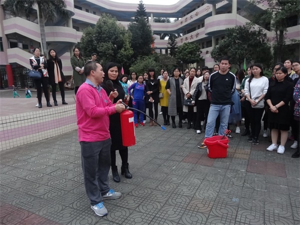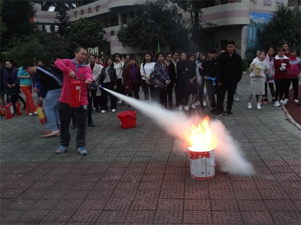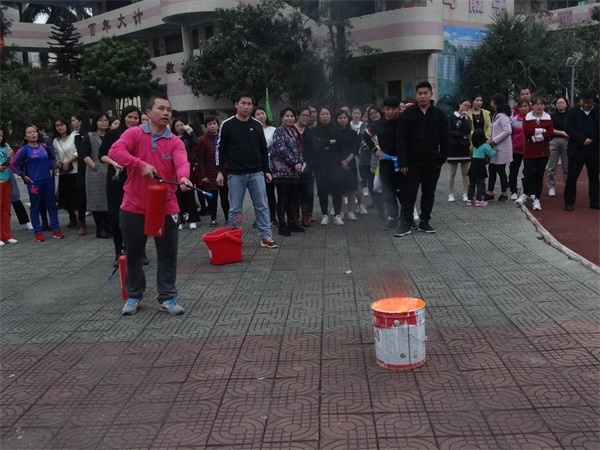 演練校委會結(jié)合實際情況,認真細致的制定了演練活動方案,明確職責要求。培訓首先由何主任強調(diào)防火的重要性及必要性,活動現(xiàn)場,并就干粉滅火器的正確使用方法進行了現(xiàn)場講解、示范、指導,強調(diào)使用滅火器要保持鎮(zhèn)靜,遇到火情千萬不要慌亂失措,牢記“一晃、二拉、三壓、四噴” 要領,掌握正確的使用方法,提高自救自護能力。隨后,在何文勇、何林、謝平主任的協(xié)助下,在場教職工紛紛上陣體驗滅火器的使用操作方法,現(xiàn)場進行了滅火演練。