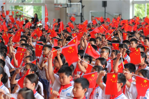 早上9時30分,廣源學(xué)校全體少先隊員在隊旗下集結(jié)。首先進行的是升旗儀式,現(xiàn)場人員在雄壯的樂曲聲中高唱國歌,注目著緩緩升起的國旗;嘹亮的國歌聲,莊嚴(yán)肅穆的氛圍,學(xué)生在五星紅旗冉冉升起時接受了愛國主義教育的洗禮。隨即,伴隨著莊嚴(yán)的出旗曲,在護旗手的伴隨下,旗手精神抖擻地持少先隊大隊旗,雄赳赳氣昂昂地走上臺,隊員們心中無比激動,感受光榮而神圣的出隊旗儀式。入隊誓詞是每一位少先隊員在入隊時定下的決心、目標(biāo)與期望?;顒蝇F(xiàn)場,隊旗飄飄,歌聲嘹亮,大隊輔導(dǎo)員洪智躍老師與全體少先隊員一起來重溫入隊誓詞;隊員們戴著鮮艷的紅領(lǐng)巾,發(fā)出豪邁的宣誓,表達了少先隊員們對祖國的熱愛。
