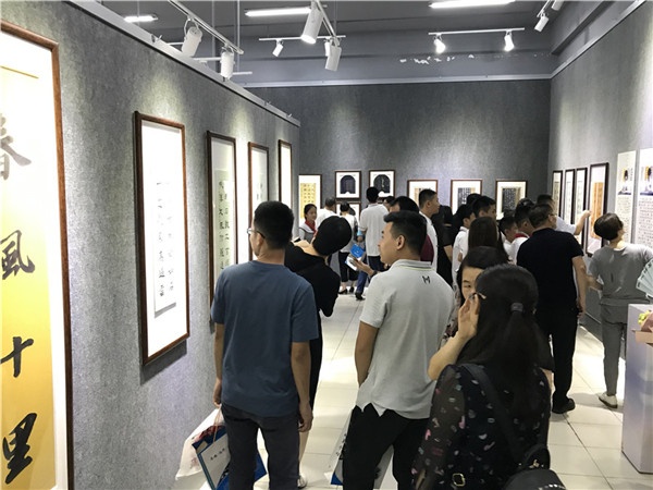 開幕式后,與會(huì)嘉賓步入展廳興致盎然地欣賞書法作品,大家驚嘆于作品內(nèi)容之豐、創(chuàng)作形式之雅、書法藝術(shù)之精、展覽創(chuàng)意之特。四位小作者也熱情向大家介紹作品內(nèi)容與創(chuàng)作過程,虛心向書法名家請(qǐng)教。各位書法大咖也熱情洋溢、不吝賜教,現(xiàn)場(chǎng)洋溢著濃濃的學(xué)習(xí)氛圍。