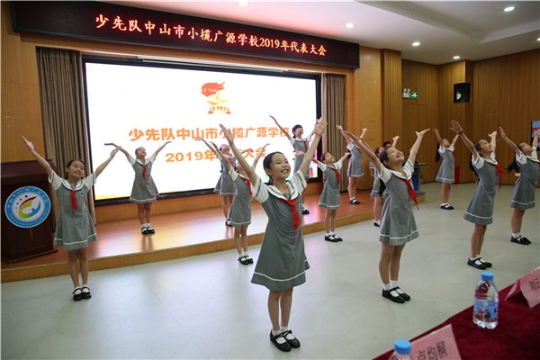 會議的第一個議程是中國少年先鋒隊中山市小欖廣源學(xué)校2019年代表大會開幕式暨第一次全體會議。