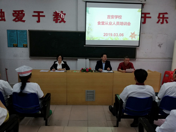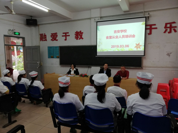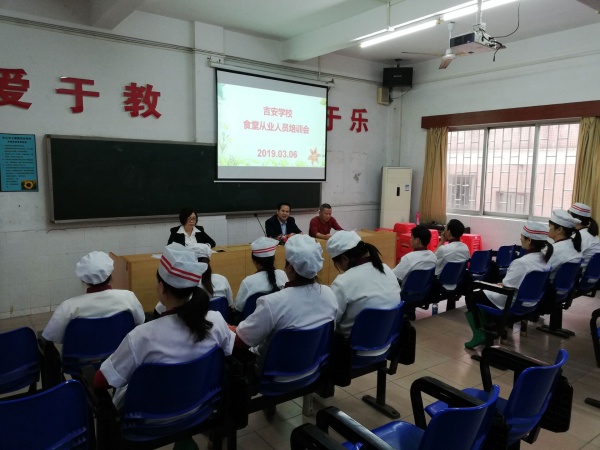 為使吉安學(xué)校食堂管理操作工作科學(xué)化,消除可能存在的學(xué)校食品安全隱患,給廣大師生營(yíng)造良好的就餐環(huán)境,吃放心飯,吃健康飯,開(kāi)心工作,開(kāi)心學(xué)習(xí)。2019年3月6日,吉安學(xué)校組織學(xué)校食堂從業(yè)人員進(jìn)行了食品安全專項(xiàng)培訓(xùn)。本次會(huì)議由后勤魏勤英主任主持召開(kāi),所有食堂從業(yè)人員參與。