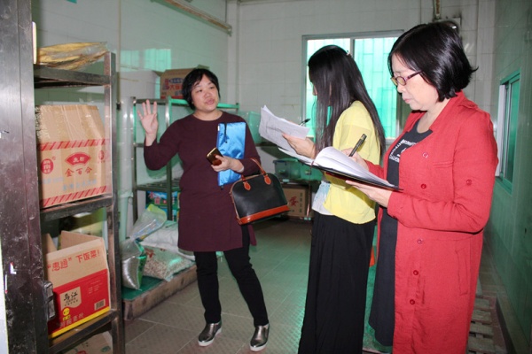 檢查組一行首先聽(tīng)取吉安學(xué)校校長(zhǎng)韋志海有關(guān)食品安全和衛(wèi)生防疫工作的匯報(bào),并查閱相關(guān)資料。接著對(duì)食堂及校園各個(gè)區(qū)域的衛(wèi)生安全情況進(jìn)行實(shí)地查看。其中檢查組重點(diǎn)檢查了食堂的食品及環(huán)境衛(wèi)生情況。詳細(xì)檢查了食堂食品存儲(chǔ)間、食品原材料加工間、食品烹飪間、飯菜分配間、食品留樣柜、餐具消洗各環(huán)節(jié)的運(yùn)行情況,并認(rèn)真查看了學(xué)校的食堂制度建設(shè)、采購(gòu)記錄臺(tái)帳、索票索證資料、飯菜試嘗記錄、留樣記錄,詢(xún)問(wèn)食堂相關(guān)管理人員等。吉安學(xué)校的食堂能夠建立各種規(guī)章制度,嚴(yán)格按照食品安全要求進(jìn)行生產(chǎn)操作,食品衛(wèi)生安全達(dá)標(biāo)。另外校園環(huán)境優(yōu)美、干凈,室內(nèi)物品擺放整潔,能做好通風(fēng)消毒工作。對(duì)于學(xué)校的食品安全和衛(wèi)生防疫工作,檢查組除了給予充分肯定,同時(shí)也提出了更高的希望和要求:1.食品安全無(wú)小事,希望學(xué)校要繼續(xù)堅(jiān)持做好每一項(xiàng)工作,落實(shí)好食品每個(gè)環(huán)節(jié)的操作規(guī)程。2.要加強(qiáng)疾病防控預(yù)防工作力度,完善疾病防控工作制度。3.要做好設(shè)施設(shè)備的更新。