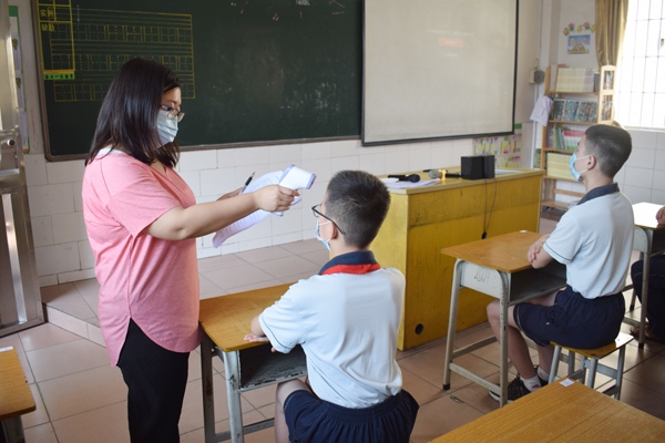 模擬晨檢環(huán)節(jié)時(shí),學(xué)生進(jìn)入教室前洗手,晨檢時(shí),班主任對(duì)學(xué)生進(jìn)行體溫復(fù)測(cè),填寫《體溫檢測(cè)登記表》,對(duì)缺勤學(xué)生進(jìn)行情況追蹤,填寫《因病缺勤登記表》。教室內(nèi)桌椅保證最大限度單人單桌,教師講課或與學(xué)生交流談話保持1米以上的距離。