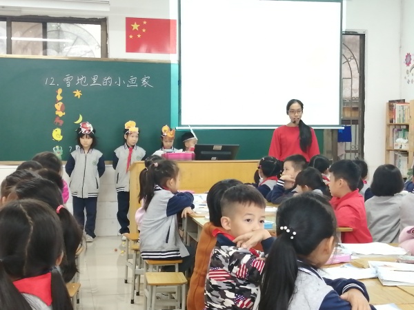 第1團隊的李冬榮老師在《 雪地里的小畫家》一課的教學中,根據(jù)一年級學生的特點,給予學生充分的課堂展示,通過個人讀、男女生分組讀、自然小組讀的形式讓學生在讀中培養(yǎng)語感,在讀中體會,在讀中理解,在讀中想象,在讀中得到美的熏陶和情感的升華。其中,課本劇的展演環(huán)節(jié)把這節(jié)課推向高潮,評委們不由自主地把掌聲送給可愛的孩子們。