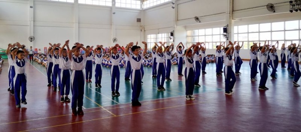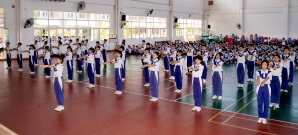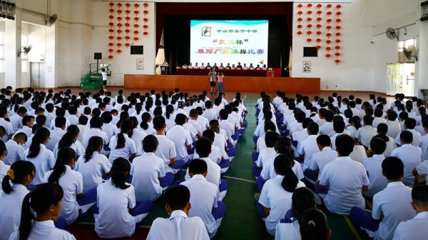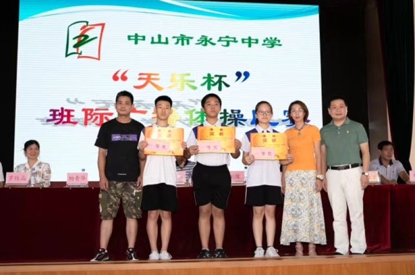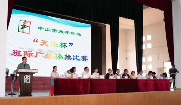 6月11日下午4點,中山市永寧中學在學校體育館隆重舉行“天樂杯”初一年級班際廣播體操比賽。天樂咨詢服務公司董事長、永寧中學家委會會長梁輝洪先生、天樂咨詢服務公司財務總監(jiān)劉健先生、永寧中學家委會副會長陳錦萍女士蒞臨現(xiàn)場,陳清茂校長、楊青華副校長、戴放良主任、王志珍副主任、羅結(jié)晶副主任等學校行政領(lǐng)導出席觀看比賽。鐘敏、朱紅衛(wèi)等老師擔任評委,何健君級長主持。
