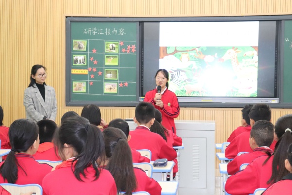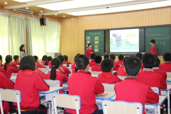 匯報課首先以視頻的形式回顧了校外實踐研學(xué)的過程,接著每個小組進行匯報展示。八個小組以不同的野生動物為主題,通過精美的PPT、生動的視頻、有趣的話劇、自信的匯報,將野生動物的特點、現(xiàn)狀、保護和未來暢想全面呈現(xiàn)出來,并呼吁在相關(guān)法律法規(guī)的保護下,要正確關(guān)愛野生動物,保護美好家園。第三環(huán)節(jié)是匯報評價活動。學(xué)生通過小組匯報情況,結(jié)合評價表,從內(nèi)容、形式、臨場發(fā)揮等方面,選出“匯報成長組”,在相互欣賞、相互學(xué)習中共同成長。第四環(huán)節(jié)是談收獲,完成自我學(xué)習評價,最后是師生暢談對匯報課的感受。