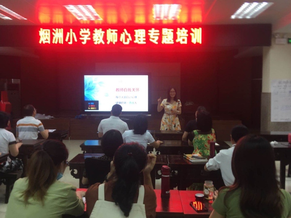 2020年6月2日是“六一”的狂歡高潮回落到原點(diǎn)的日子,西區(qū)煙洲小學(xué)為了讓全體老師能整裝再出發(fā),帶領(lǐng)孩子們?nèi)肀Ц】档淖晕遥匮猩绞薪萄惺伊簞α崂蠋煘槿w教師帶來(lái)一場(chǎng)題為“做維護(hù)心理健康的責(zé)任人”的心理講座。此次講座是西區(qū)教師心理培訓(xùn)的一部分,出席本次活動(dòng)的還有西區(qū)教育事務(wù)指導(dǎo)中心德育專干蘇文森。
