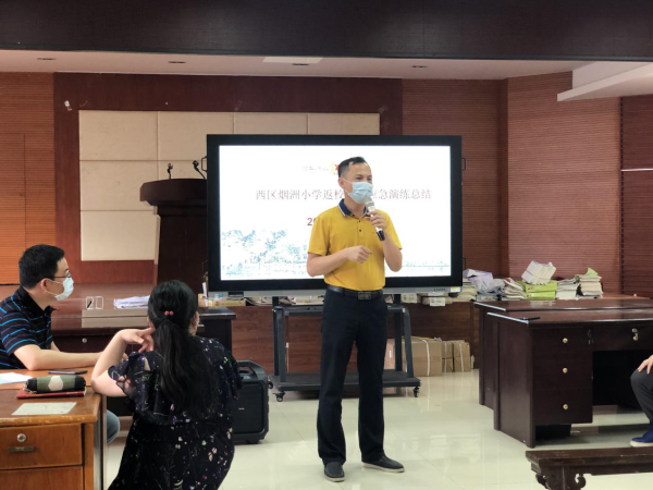 在整個演練過程中,所有參加演練的教職工及行政領(lǐng)導均佩戴口罩,全程服從統(tǒng)一指揮。應(yīng)急演練結(jié)束后,西區(qū)文體教育局領(lǐng)導、學校衛(wèi)生健康副校長作總結(jié)發(fā)言并對本次演練提出了建議:真正開學后面臨的情況會更復雜、更具體,要求老師們以生為本,更加細致地做好各項防控與開學工作,關(guān)注學生的課間、放學等,確保學生身心健康。