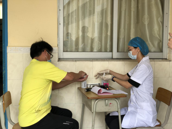 演練按計劃時間正式開始。校外值日教師演練維持校門口秩序,確保家長不得進入校區(qū),保障學生秩序和安全。校內(nèi)值日教師引導進入學校的學生根據(jù)地上的腳印有序排隊,前后間隔一米,入校門時進行體溫檢測。演習中模擬發(fā)現(xiàn)體溫超過37.3°的同學,值日教師引導該同學到臨時篩查點,由醫(yī)生進行體溫的再次測量并進行詢問有無流行病學史等情況,并根據(jù)具體情況做出及時處理。上課演練過程中,由老師扮演的學生模擬出現(xiàn)了體溫異常、嘔吐等現(xiàn)象,由上課的老師、校醫(yī)做出正確的應(yīng)急處理。