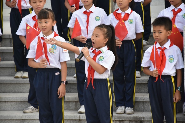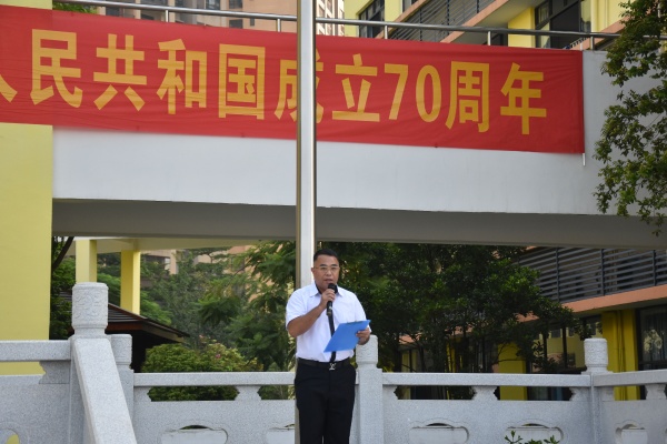 國(guó)旗升起后,西區(qū)廣豐小學(xué)的梁慶助校長(zhǎng)發(fā)表了熱情洋溢的講話,梁校長(zhǎng)向廣大師生致以節(jié)日的問候和祝福,他號(hào)召全體師生都要熱愛偉大的祖國(guó),師生之間也要相互尊重、相互包容、相互幫助。接下來是來自三(6)中隊(duì)的少先隊(duì)員代表宋雨軒進(jìn)行國(guó)旗下講話,三(6)中隊(duì)全體隊(duì)員和周新橋老師也獻(xiàn)上精彩節(jié)目:配樂朗誦及愛國(guó)歌曲聯(lián)唱演唱《今天是你的生日,中國(guó)》、《龍的傳人》和《我的中國(guó)心》。最后大隊(duì)輔導(dǎo)員夏艷老師做了總結(jié)并帶領(lǐng)全體師生集體歡呼“祖國(guó)萬(wàn)歲!”