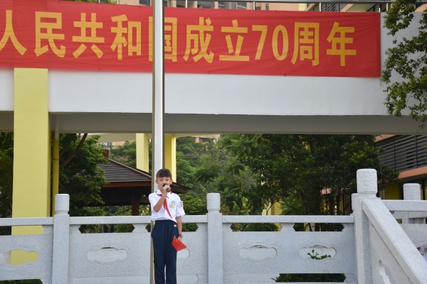 2019年9月30日清晨,西區(qū)廣豐小學(xué)舉行慶祝新中國(guó)成立70周年升旗儀式,全校師生參加了升旗儀式。在嘹亮莊嚴(yán)的國(guó)歌聲中,升旗手將鮮艷的五星紅旗冉冉升起,師生們向國(guó)旗致以莊嚴(yán)的注目禮,愛國(guó)的激情在師生心中澎湃。